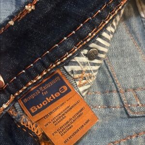 Chic Rock Revival shorts with distressed blue denim. Features intricate stitching and stylish design. LIKE NEW size 24 Amy short