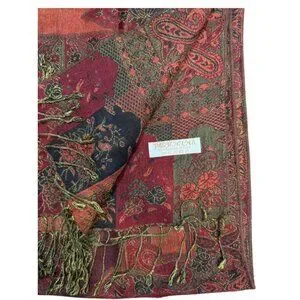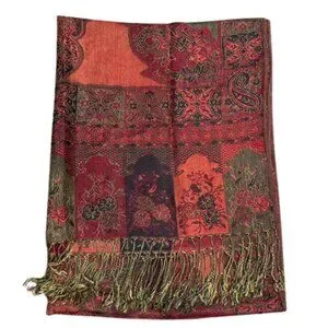 Pashmina & Silk Red Paisley Scarf – 55% Pashmina, 45% Silk