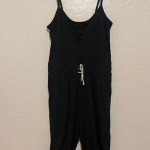 Stylish black sleeveless jumpsuit with drawstring waist. Perfect for casual outings. Pads have been removed