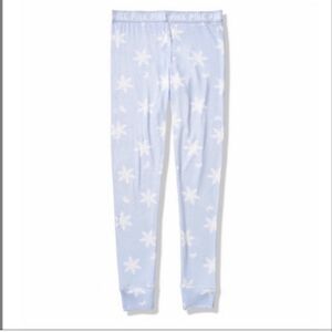 Adorable light blue pajama bottoms with snowflake design. Regular rise, slim fit, logo elastic waistband, cuff banded bottom, imported viscose/polyester and spandex. Super soft and comfy for bedtime. In Excellent Condition 🤍