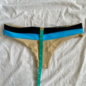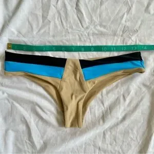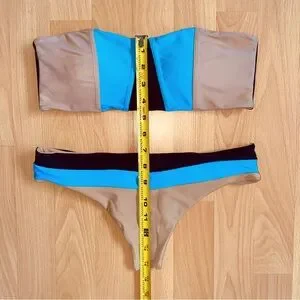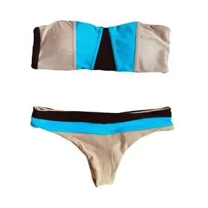 Women’s Swimwear bikini set turquoise blue black and beige nude striped bikini top and bottom Size S