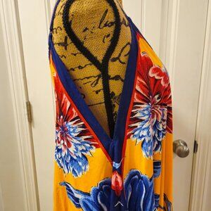 Super flowy and fresh handkerchief dress from Flying tomato Size large. Features a bold flower pattern on a golden yellow base.