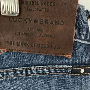 Classic Lucky Brand straight leg jeans in a versatile medium wash. These 121 slim fit jeans offer the perfect balance of comfort and style with their straight leg silhouette. The medium wash denim features subtle fading and whiskering for an authentic lived-in look. Perfect for casual outings, weekend adventures, or dressed up with a blazer for smart-casual occasions. The timeless design pairs effortlessly with everything from t-shirts to button-downs.