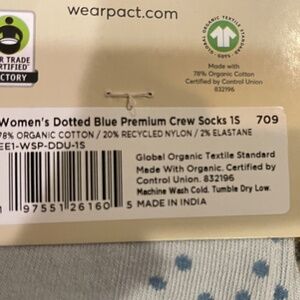 NEW! Pact Dotted Blue Premium Crew Socks Two Pair NWT! Retail: $24