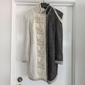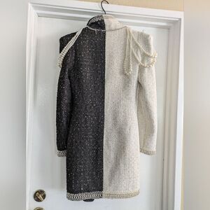 Add a touch of glamour to your wardrobe with this stunning black and white designer dress by Latise. The dress features intricate pearls and sequin accents, adding a luxurious feel to the sleek design. It is fully lined and features a full zip for ease of wear. This dress is perfect for any formal occasion and is sure to turn heads. It comes in size small and is a must-have for any fashion-forward woman. Don't miss out on this opportunity to add a touch of elegance to your wardrobe.