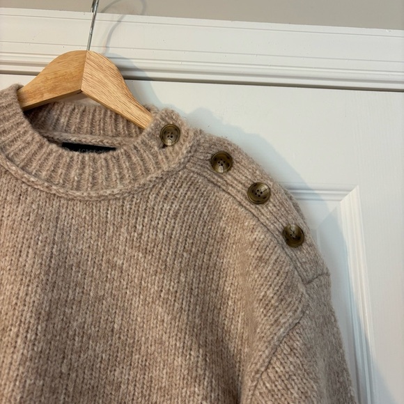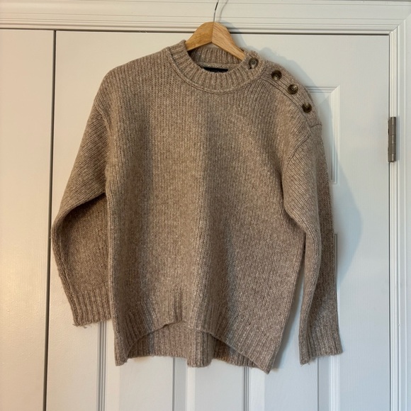 J. Crew Cream Beige Button Shoulder Heathered Sweater Ribbed Alpaca Wool XS Soft