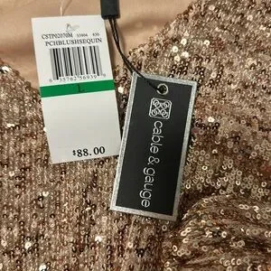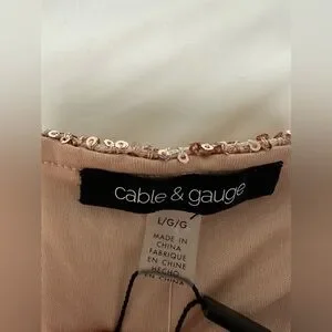Cable & Gauge Rose Gold Sequin long sleeve Blouse. Elegant rose gold blouse with shimmering sequins. Features a stylish twist front and V-neckline. Long sleeves with elastic cuffs. Completely lined. Including the sleeves. Ideal for adding sparkle to any outfit. New with tag.