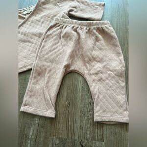 Adorable outfit. In the photo it looks pink but it’s brown! It was my son’s outfit. It’s really so cute! Some pilling.