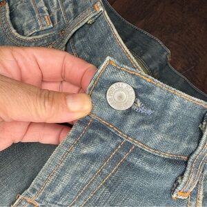 These blue jeans feature a timeless design with a dirty wash worn in inspired faded look. Vintage Y2K Bootcut not too flared. The durable denim showcases “natural” wear patterns, offering a rugged yet stylish appearance. Perfect for adding a touch of classic charm to any casual outfit.