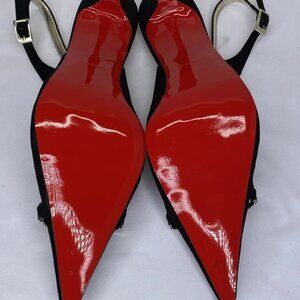 Monique Women’s Suede Slingback Pointed Toe High-Heel Pumps – Black – Size 10M