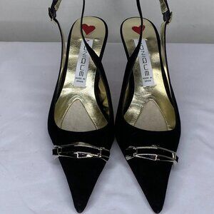 NEW MONIQUE Women’s Suede Slingback Pointed Toe High-Heel Pumps – Black–Size 10M
