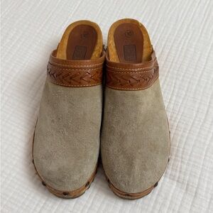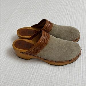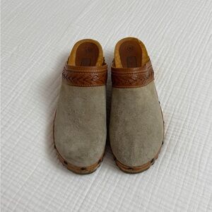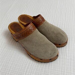 Vintage 90’s Y2K Faded Glory Suede Leather Chunky Slip On Wooden Clogs Size 10