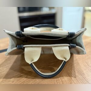Elegant Chloé tote with cream and black design. Features bold logo straps.