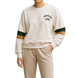 XL American Eagle Cream Cotton Blend Crewneck Stripes Sweatshirt