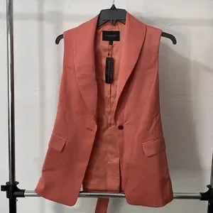 Brand new with tags — this stylish Banana Republic women’s two-piece set includes a tailored coral vest (Size 4) and matching pleated shorts (Size Medium). Crafted from a smooth, lightweight fabric with a satin-like finish, this set is perfect for chic summer outings, vacation wear, or elevated casual looks. The vest features a single-breasted button closure, flap pockets, and a belt detail, while the shorts have front pleats and a comfortable waistband for a flattering fit.