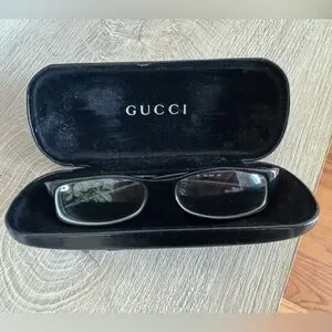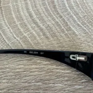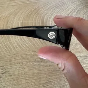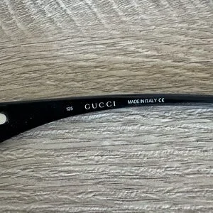 Sleek black eyewear arm. Gucci branding. Made in Italy.