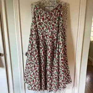 Charming high waisted maxi skirt featuring a vibrant floral pattern in red and green. Needs good hem job. XL fits 10-12. Dust bag included