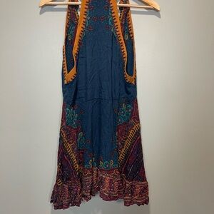 Free People Backless Dress - Deep Blue and Rich Brown