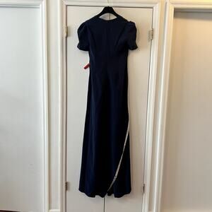 Mac Duggal 2630 Plunge Neck Puff Sleeve Cut Out Gown Navy 8 UB