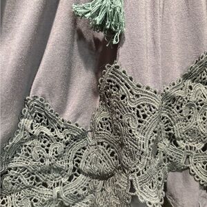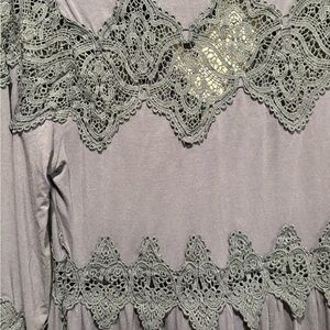 Pol Gray Lace-Up Crochet Boho Blouse NWT Size M