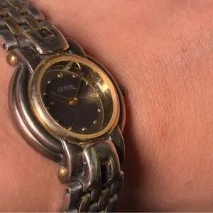 Chic Guess watch with gold and silver links. Perfect for any occasion.