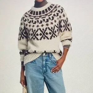 FRAME NWT WHITE ALPACA FAIR ISLE SWEATER SIZE L