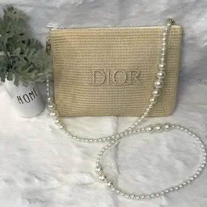 Dior Capture Totale Sample Set with Tan Woven Clutch with Pearl Crossbody Strap