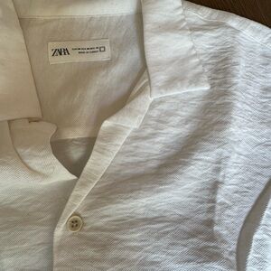 Zara Men's Crisp White Casual Button-Down Shirt