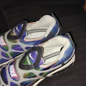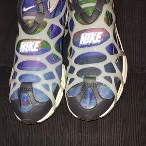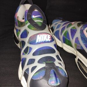 Dynamic design with multicolor pattern. Features black and white accents. Comfortable and stylish.