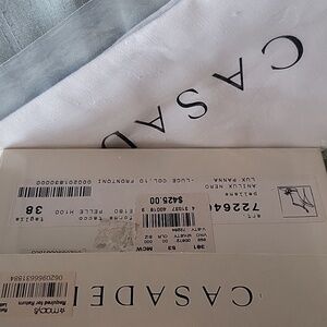 Chic Casadei heels with a black and cream color scheme. Features elegant bow accents and pointed toes. patented leather toe and heels. I normally wear 7 1/2 but these are size 8 and fit perfect.