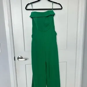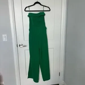 Chic strapless jumpsuit in vibrant emerald. Perfect for stylish outings.