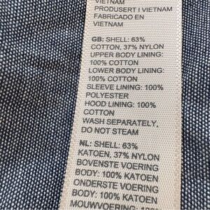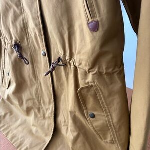 The design details are very nice like snap flap over zipper, 2 snap hand pockets, 2 zipper chest pockets, quality draw cord at waist and leather zipper pull.