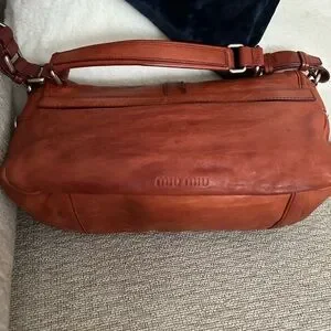 Miu Miu Brown Leather Shoulder Bag with Velvet Bow