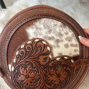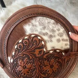 American Darling brown leather bag with cowhide.