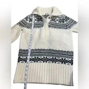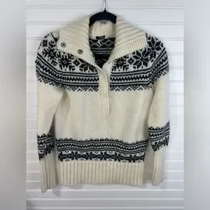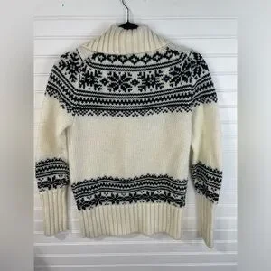 J. Crew Black & Cream Long Sleeve Snowflake Collared Sweater Medium Women’s GUC