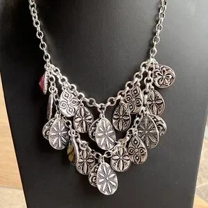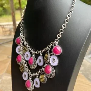 Premier Design Stunning Purple Multi-Strand Bib Necklace Silver Purple Green Tea