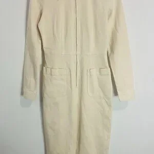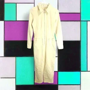 Embrace utilitarian elegance with this Wilfred Free jumpsuit, crafted from a sturdy cotton blend and tailored for both comfort and edge. Featuring a zip-front closure, collared neckline, and oversized hip pockets, this piece channels workwear chic with a minimalist twist. Made in Sri Lanka, it reflects the brand’s commitment to quality craftsmanship and timeless design.