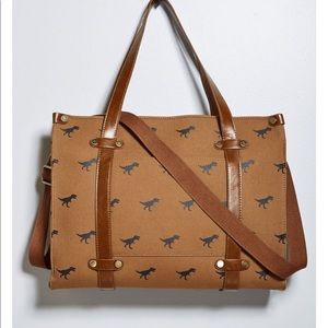 Charming red shoulder bag with playful cat print. Features sturdy brown straps and accents. Perfect for everyday use.