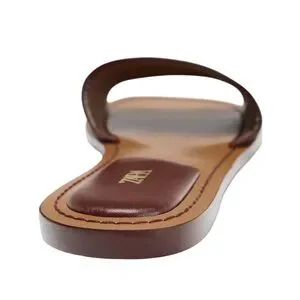 Elegant glossy brown slides by Zara. Ideal for casual elegance.