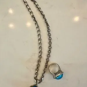 Andrea Candela turquoise clover pendant w/diamonds with chain and ring.
