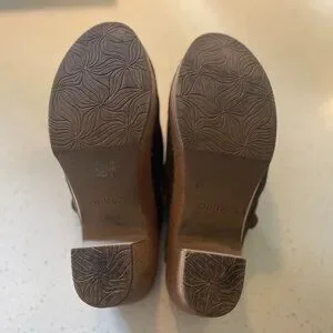 Beautiful olive green clogs. Suede material. Size says 8.5. Euro size is 39. I am a womans 9 and they fit perfectly. Gently used.