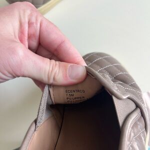Step out in style with these quilted slip-on shoes. The taupe color adds a touch of elegance to any outfit. Perfect for casual wear.