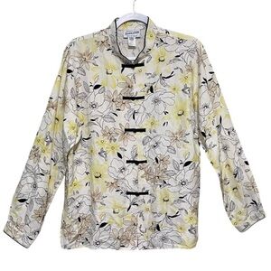 Pendleton Silk Linen Button Up Shirt Floral Long Sleeve Asian Inspired Size 14