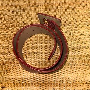 Vintage Womens M/L Classic Croc Embossed Wide Red Leather Belt Preppy Mature Y2K