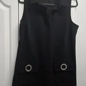 Chic black mini dress by MSK. Features sleeveless design and silver grommet details. Perfect for stylish outings.