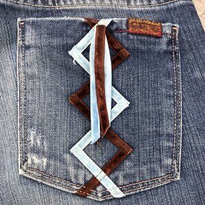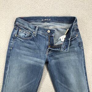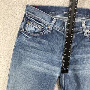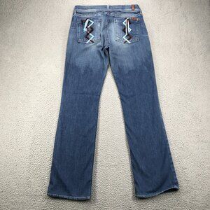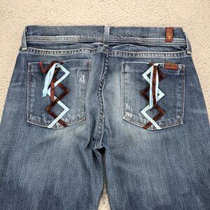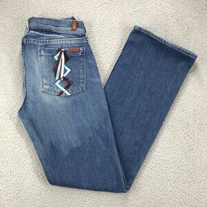 7FAM Jeans Womens Size 28 Boot Cut Low Rise Ribbon Back Pocket Faded Wash Denim