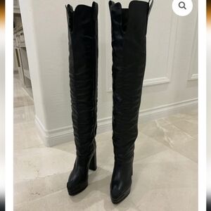 Schutz Rosalina Boots Black Platform Lug Sole Almond Point Toe Pull On