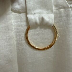This white satin long sleeve mini dress features a v neckline and a belted detail with gold buckle. The dress has belt loops for the accessory which is adjustable.