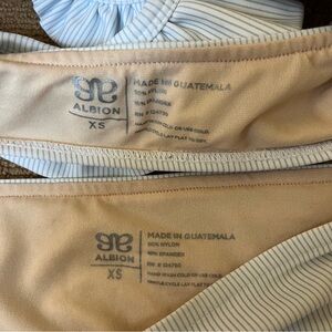Size XS. High waist bottoms retail for $64. Bella ruffle off shoulder crop top retails for $88.