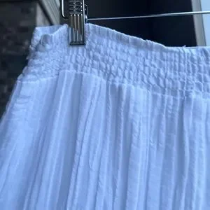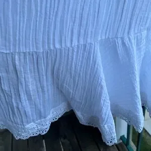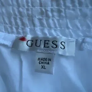 ✨ Brand new with tags! This stunning Guess white midi skirt combines romantic elegance with breezy comfort. Crafted from a lightweight ramie-cotton blend, it features an asymmetrical wrap-style hem adorned with delicate lace trim.